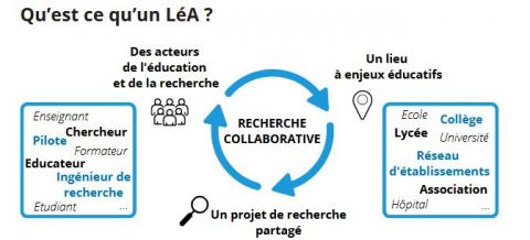 - Un LéA est un partenariat durable (3 ans) entre un lieu d’éducation (école, collège, lycée, établissement supérieur, centre de formation…) et des chercheur·e·s, pour conduire une recherche collaborative. (Ife ENS Lyon)